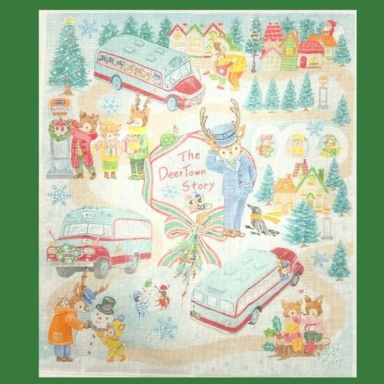 初乗務する鹿の新人運転手の成長していく様子を、奈良の伝統産業である蚊帳織りふきんにデザインした商品です。